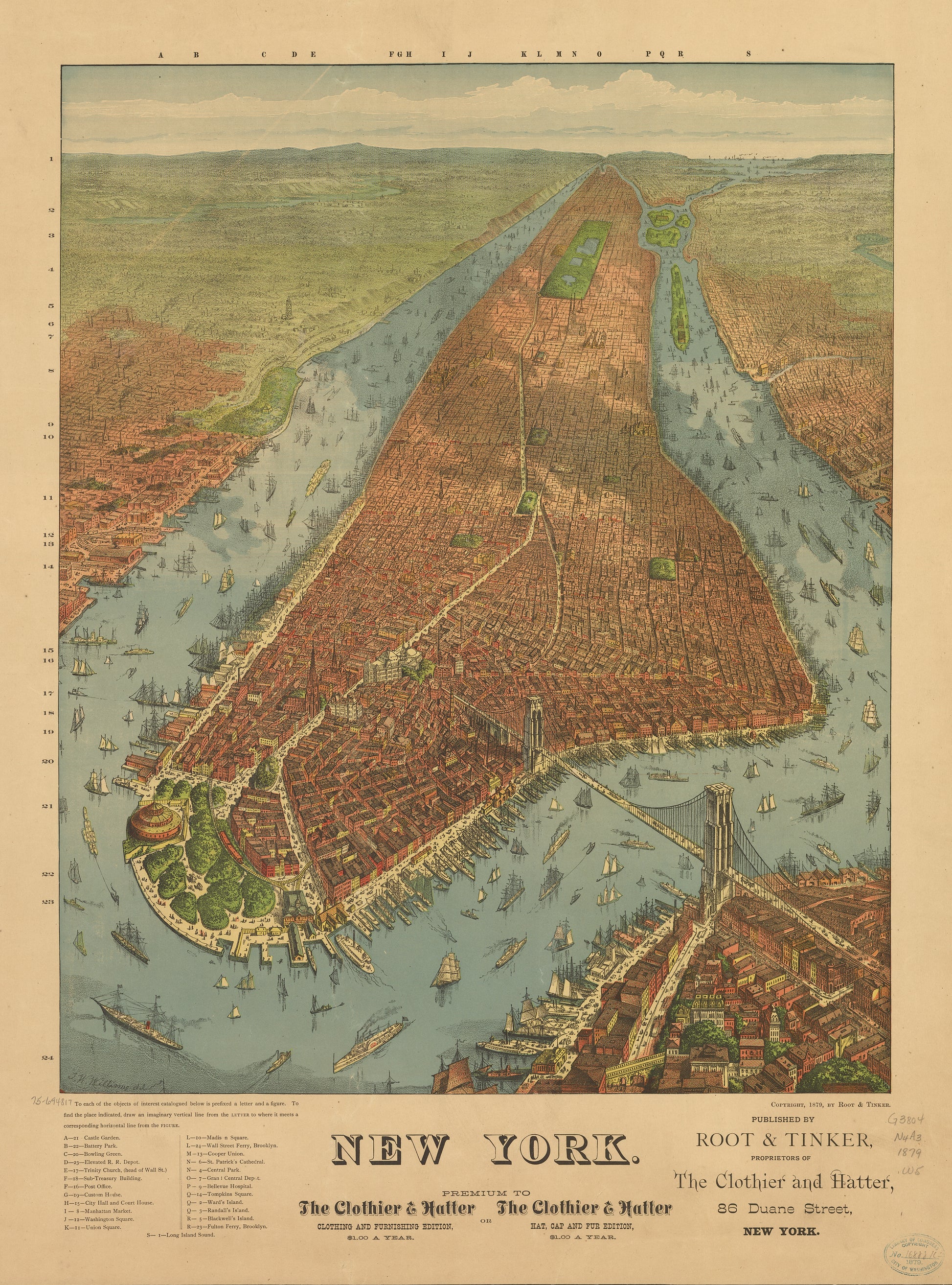 New York City Map (1879) – Vintage Manhattan Bird’s-Eye View Reproduction Wall Art Print (Historic Cartography)