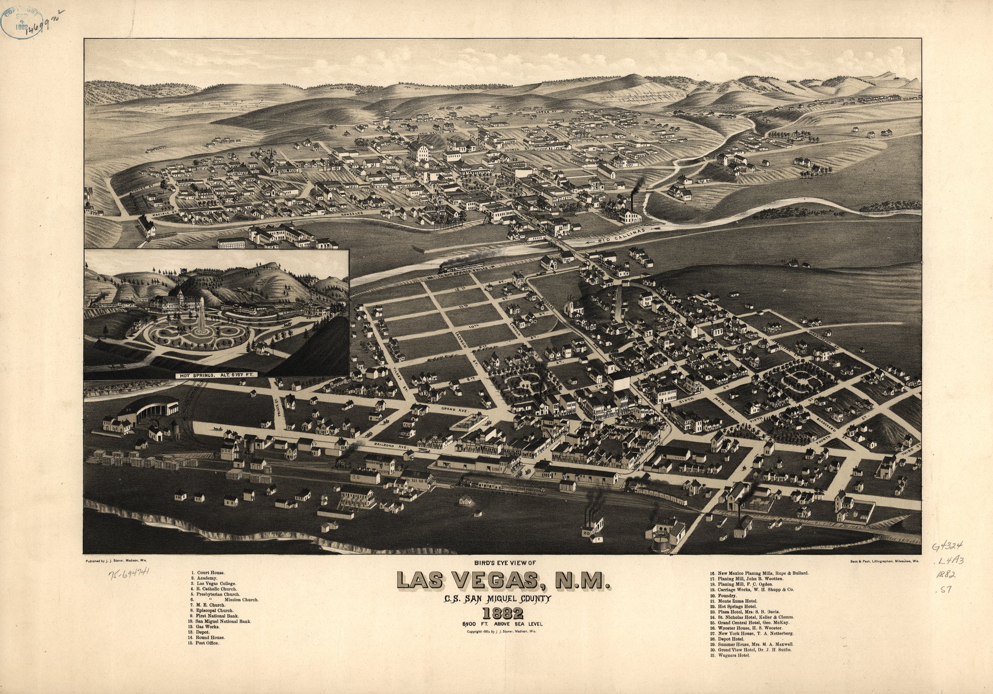 Las Vegas, New Mexico Map (1882) – Vintage Birds Eye View Illustrated City Map Reproduction Wall Art Print (Historic Cartography)