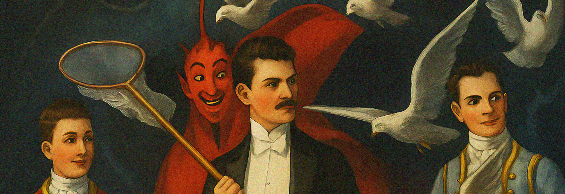 This high-quality reproduction preserves the rich color and dramatic artistry of the original vintage lithograph, making it a perfect display piece for magic enthusiasts, collectors, and lovers of historical design.
